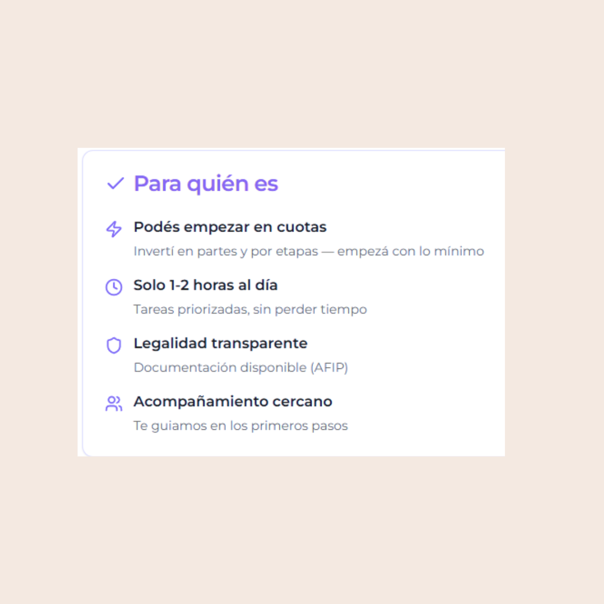 Te invito a aprender el método real para generar ingresos desde donde estés. En este paso a paso, te voy a compartir las herramientas que me permitieron impulsar este negocio digital desde la comodidad de mi hogar